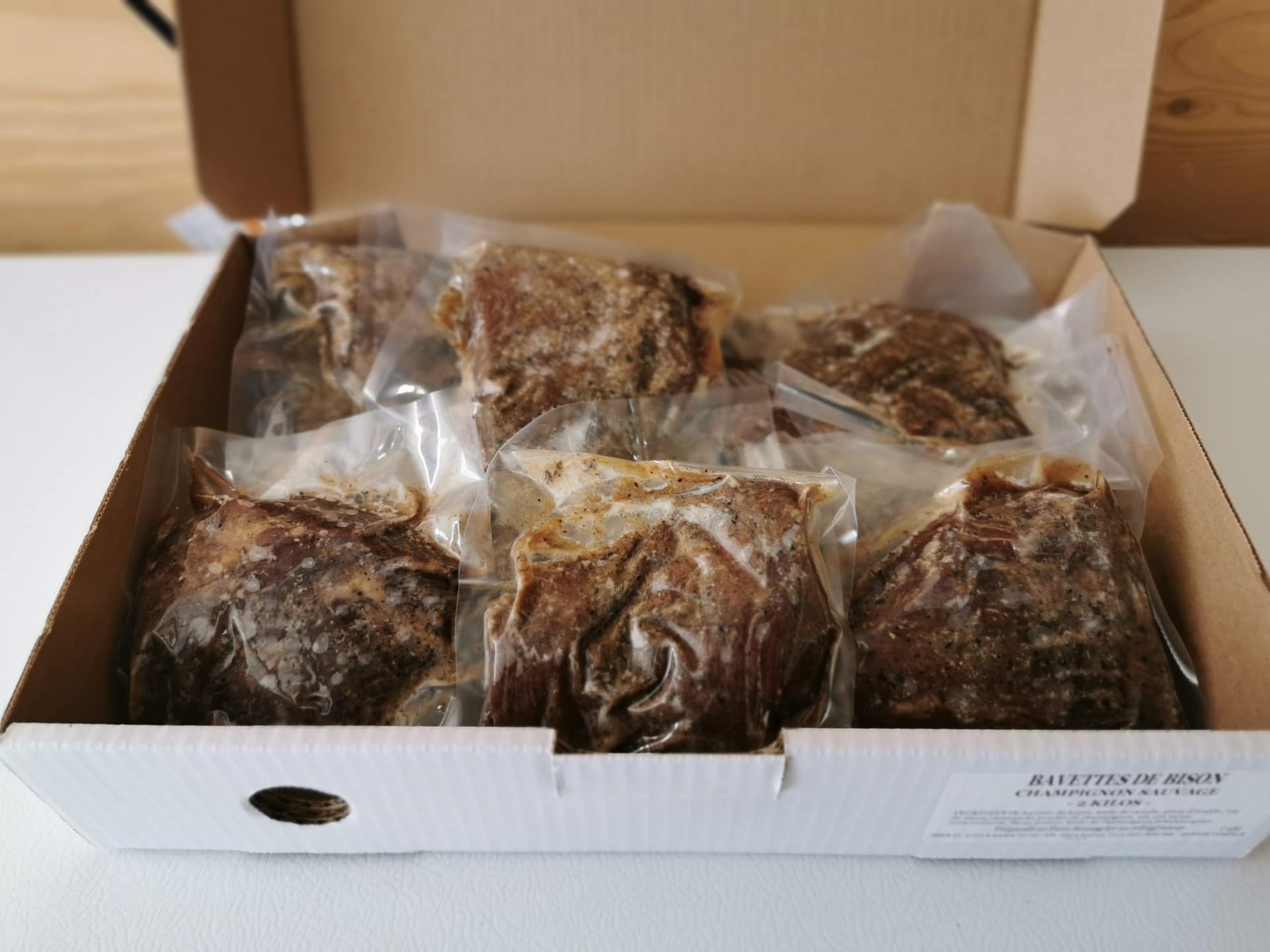 | Cuisson | Bbq ou poêle: 3 min./côté Four: 350-400°F ATTENTION: Le bison est une viande peu infiltrée de graisse et très riche en protéines , elle cuit donc plus rapidement que le boeuf. |