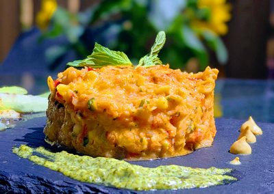 Décongeler dans l’eau froide pendant 20 à 35 minutes, incorporer la sauce, mélanger et portionner en tartares.